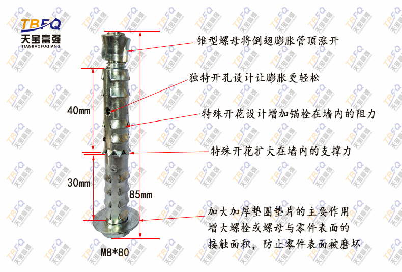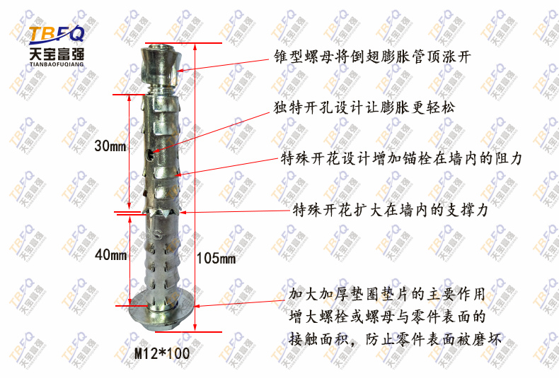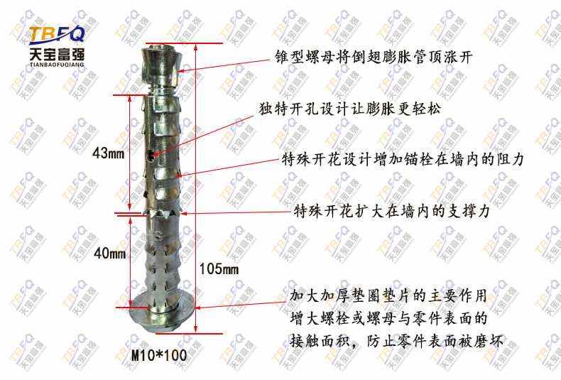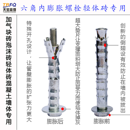 Light body brick screw Bread wall flat expansion bolt Light body brick anchor slag off soft wall rising wire Six outer and inner flat expansion bolt