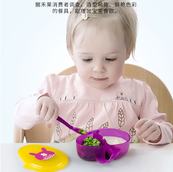 Hong Kong Heguo Baby Supplementary Food Bowl Portable Outgoing Baby Cartoon Tableware Set Children's Compartment Bowl with Spoon and Cover