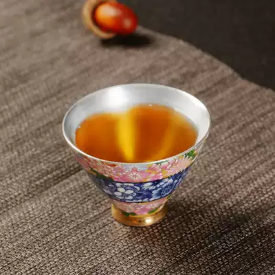 Silver cup 999 sterling silver teacup Household blue and white Kung Fu tea set handmade liner gilt silver master cup tea cup