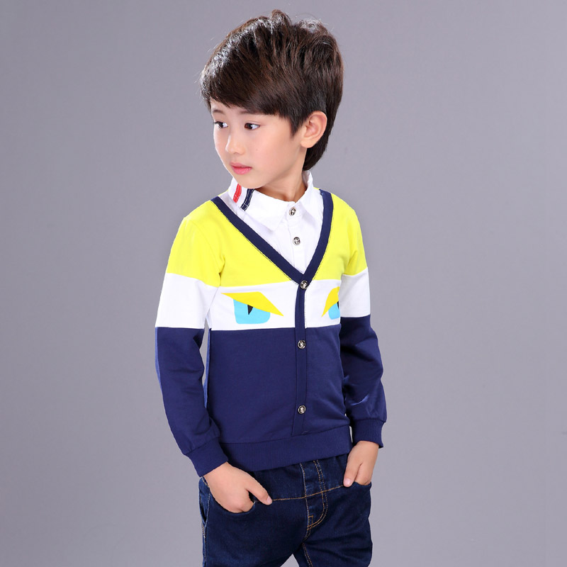 2022 new spring and autumn clothes boy shirt with long sleeves CUHK children fake two shirts primary and middle school students blouses Korean version of the tide