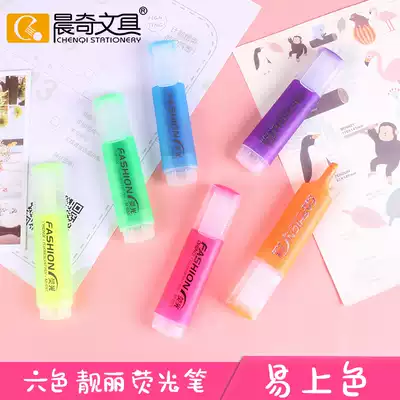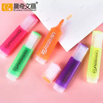 Chenqi M-655 color fluorescent stroke key marking pen Office students with oblique head semi-transparent marking pen