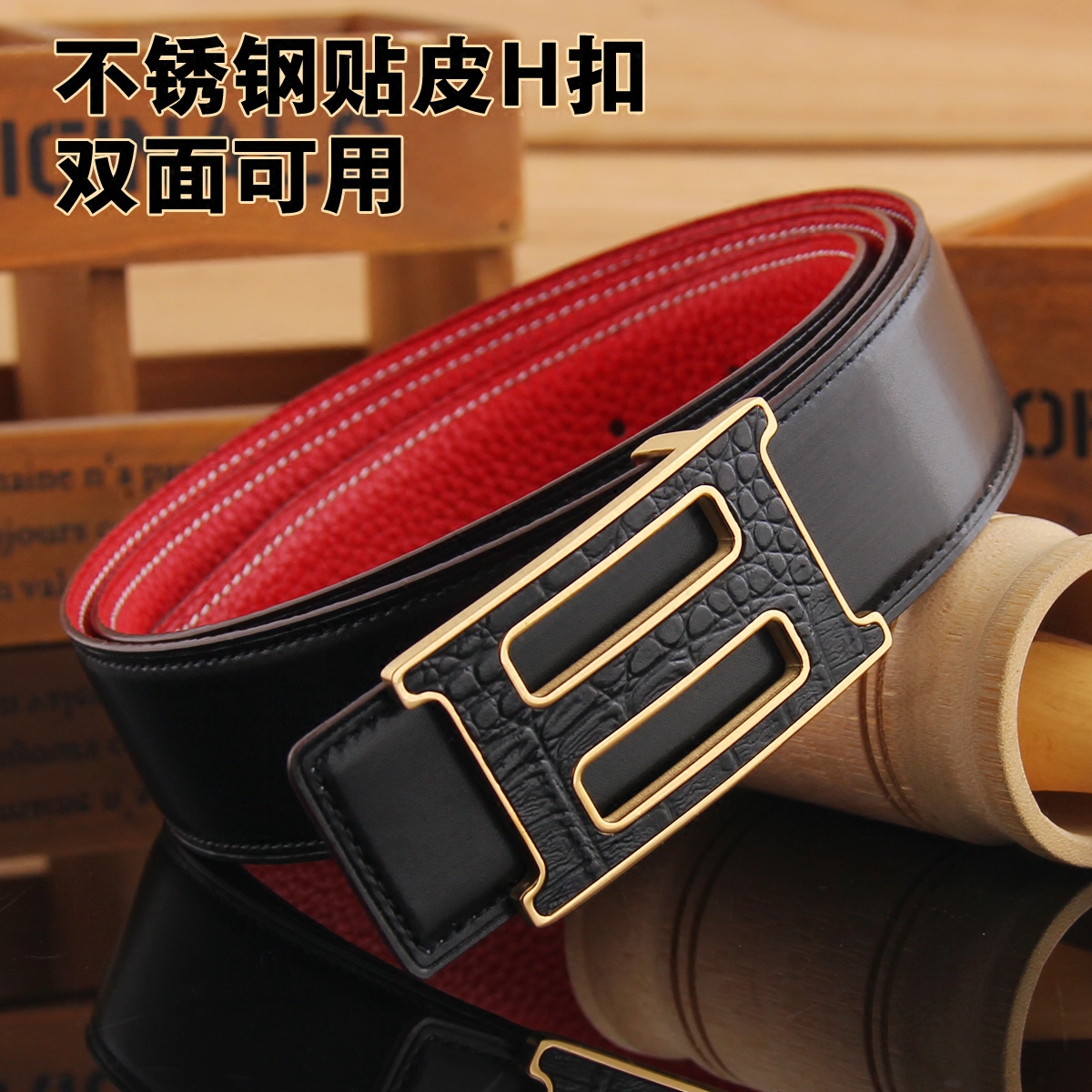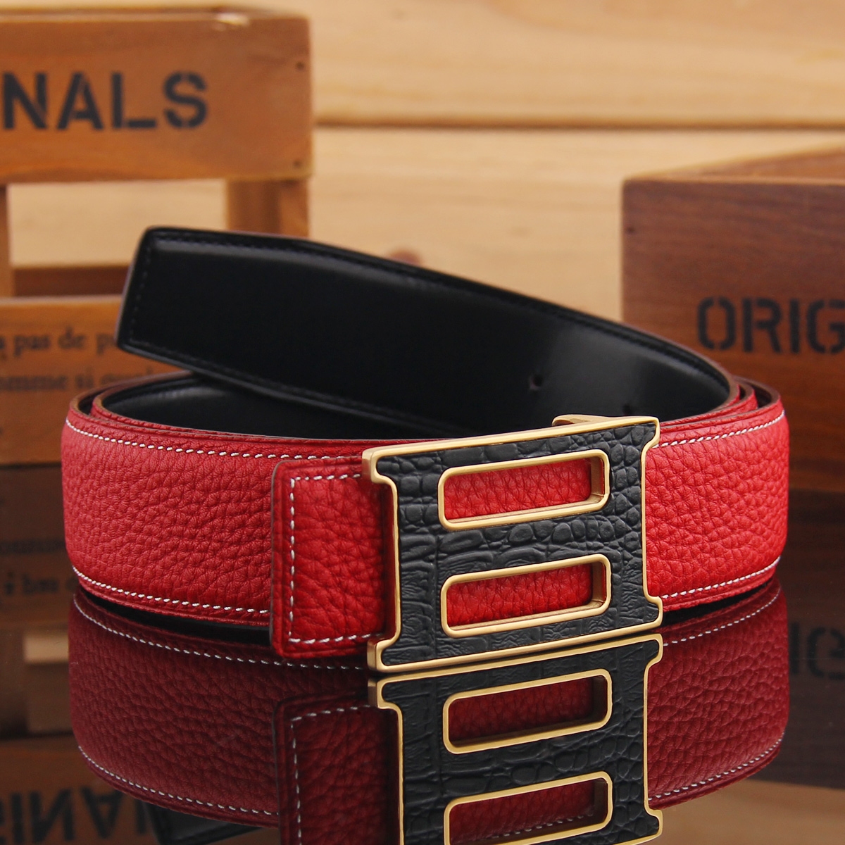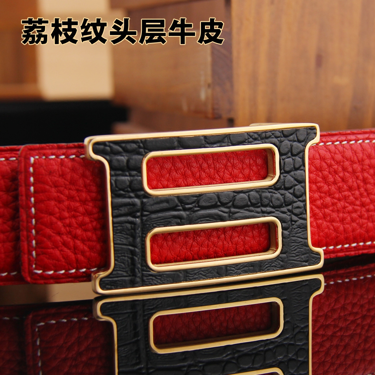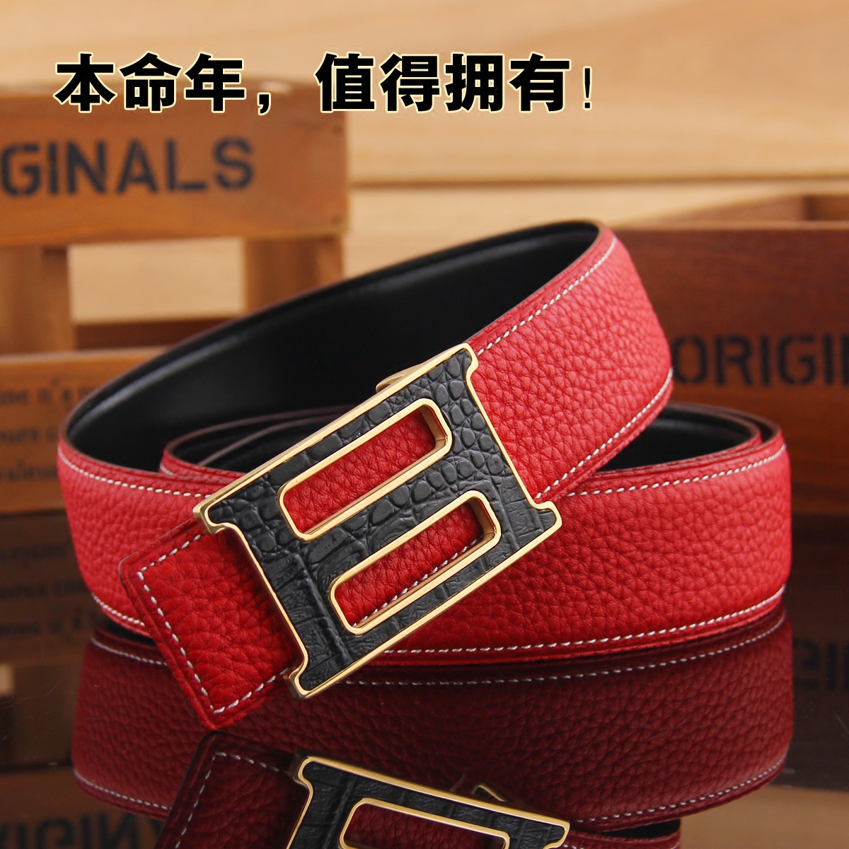 Ailanbao business smooth buckle men's leather belt leather first layer cowhide natal year red belt youth Korean version