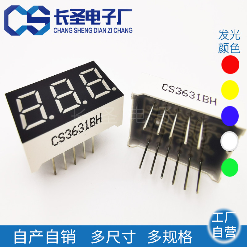 Digital tube : 0 36 inch three - bit LED digital tube high red and blue and white display