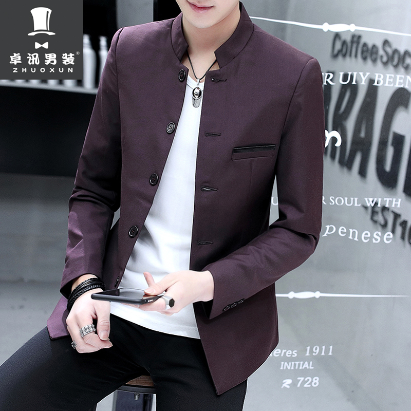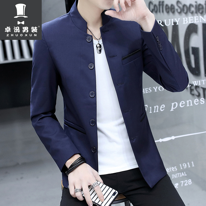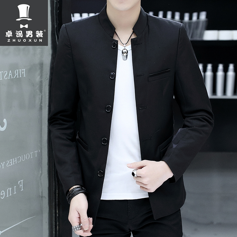 Spring and autumn men's Korean version trendy youth stand-up collar casual suit tailored small suit handsome Zhongshan suit men's jacket