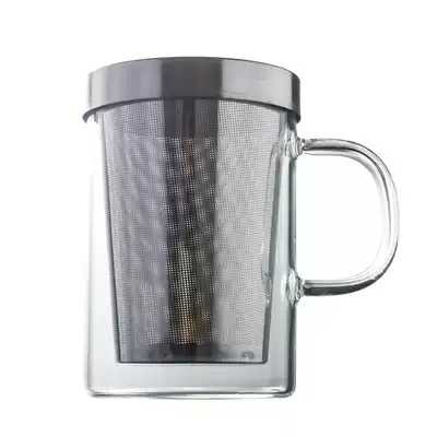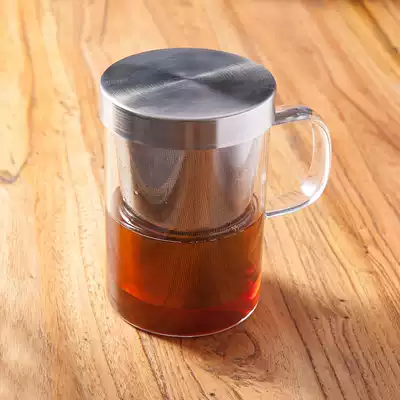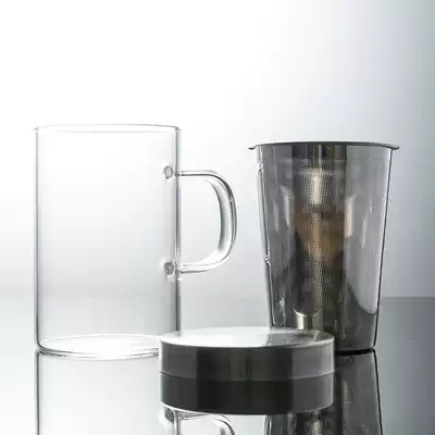 Grass and wood thickened glass Water cup with lid filter Stainless steel liner Glass teacup Flower tea cup Office cup