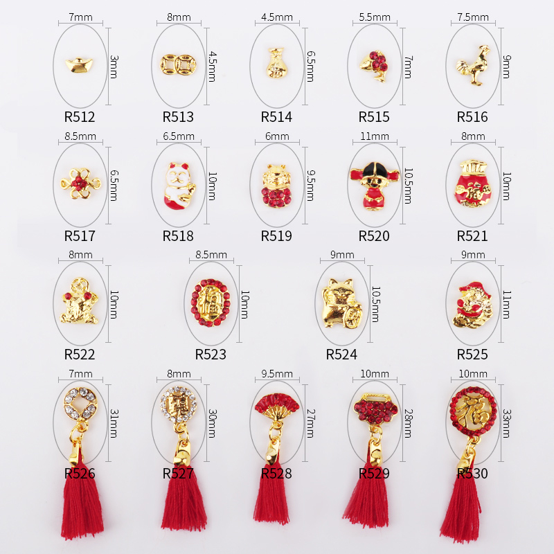 R512 Yuanbao R514 Golden Fortune Bag R516 Golden Rooster Announcement R517 Chinese Knot R518 Little White Lucky Cat R519 Red Diamond Lucky Cat R520 Lucky Boy R522 Golden Toad