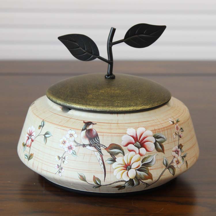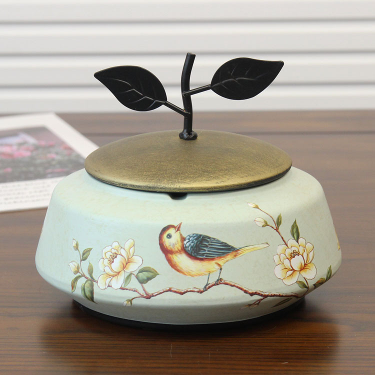 American ceramic ashtray European vintage ashtray with lid coffee table decoration craft furnishings creative ornaments