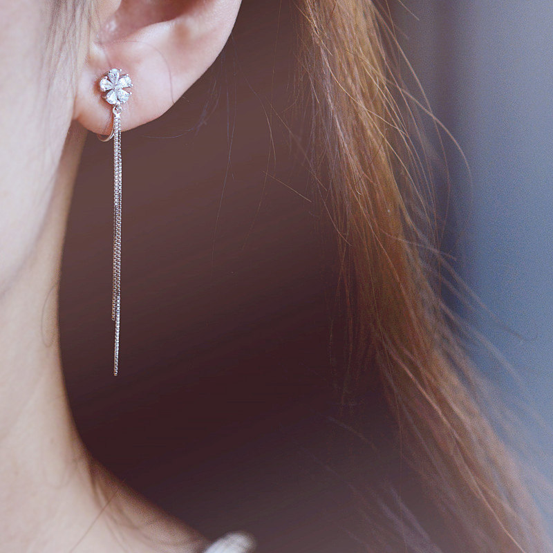 925 silver no ear pierced female ear clip French forest fairy super fairy net red long version earrings high sense niche summer