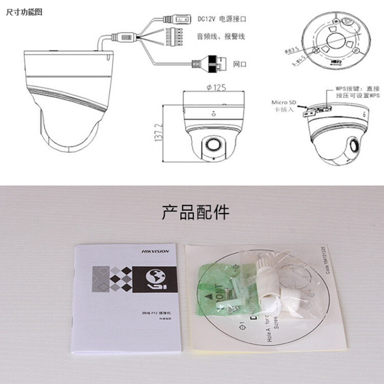 DS-2DC2204IW-D3 W Hikvision 2-4 million 360-degree PTZ small hemisphere POE optional DE3 W