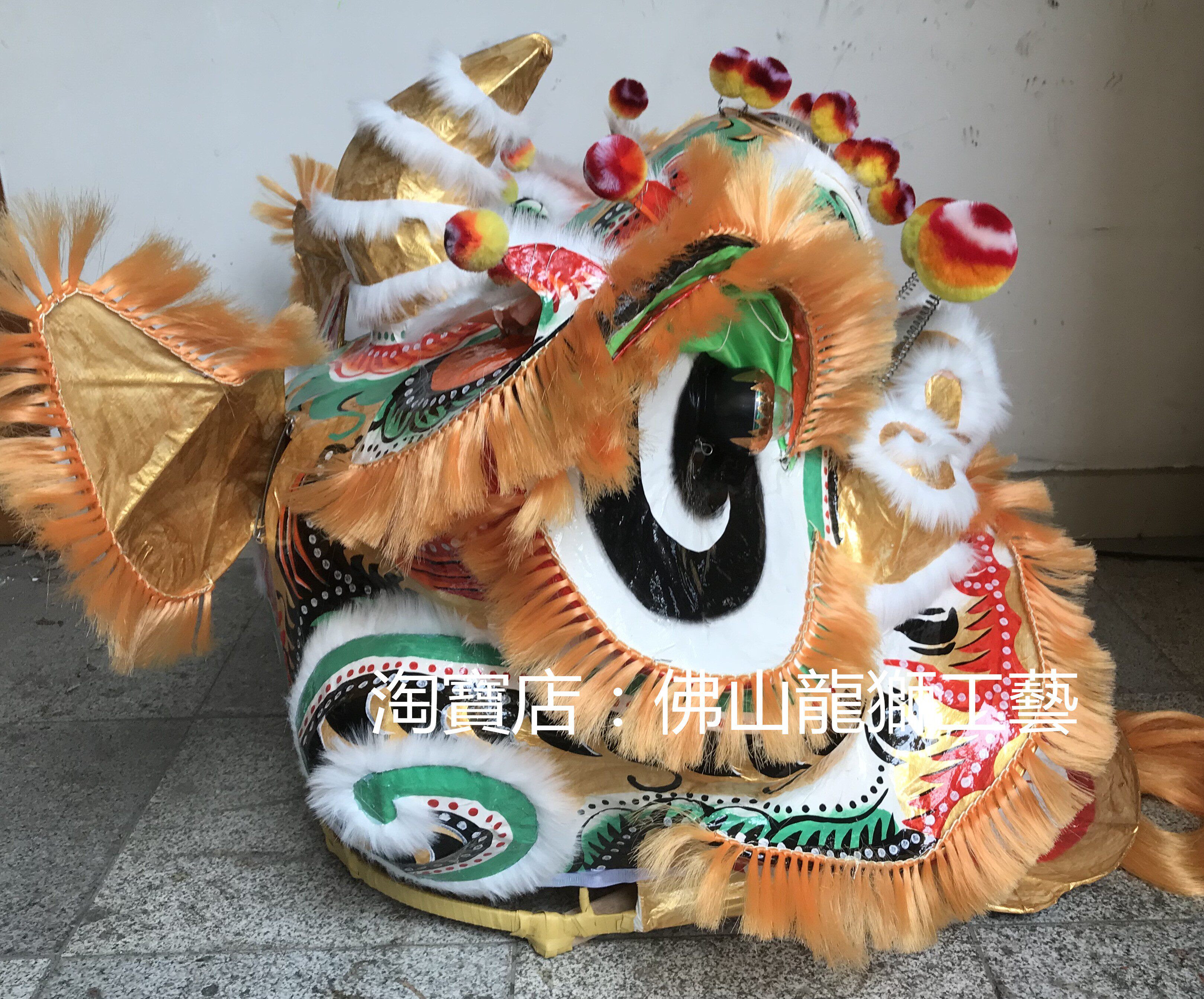 Authentic traditional Foshan hand-painted gold background color gold toothbrush beard lion set) traditional round cheek toothbrush Su) Nanxing lion