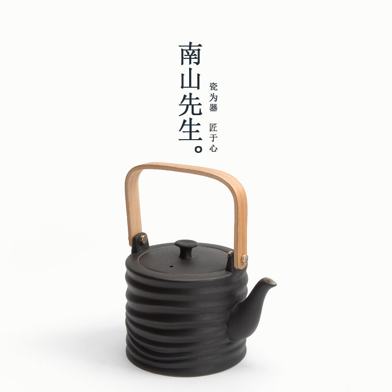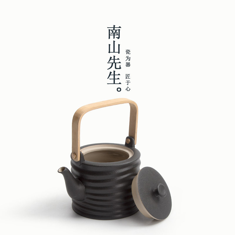 Mr Nanshan Wave one pot four cups ceramic filter teapot Teacup set Household beam pot Black pottery tea set