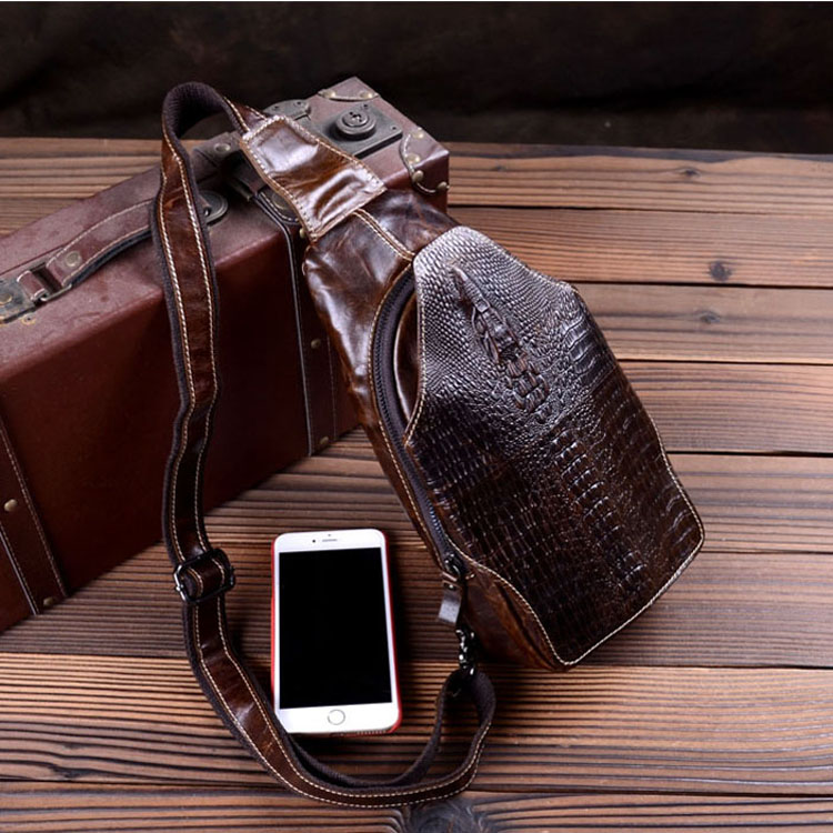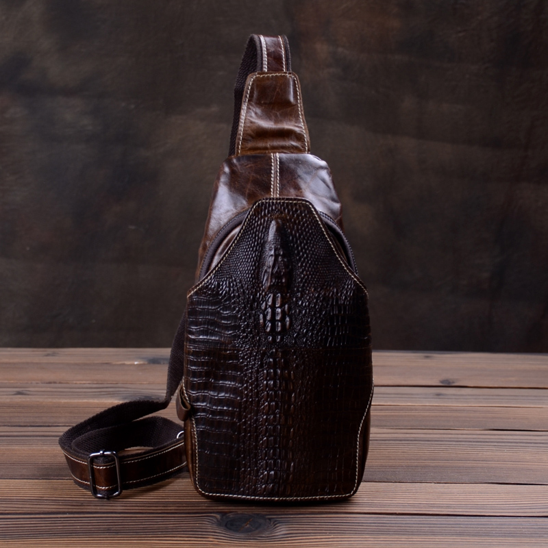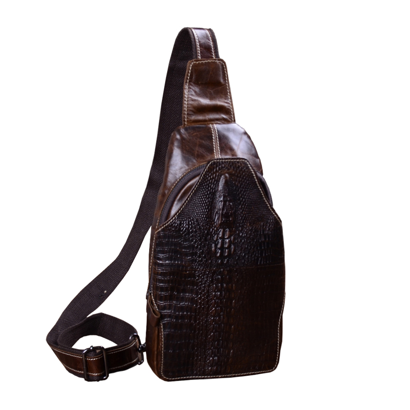 Men's Leather Chest Bag Shoulder Bag Crossbody Fashion Leather Casual Backpack Crocodile Pattern Leather Bag Men's Waist Bag