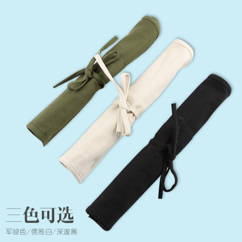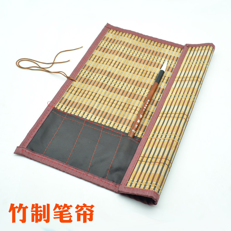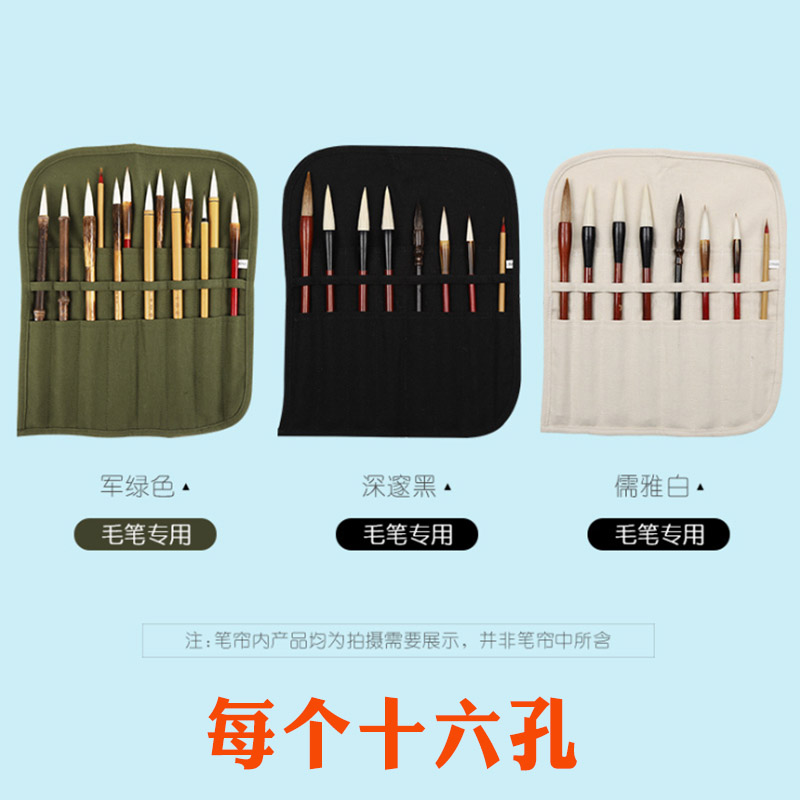 Canvas 16 Porous with cloth bag pen curtain Wenfang Four Treasure students Medium Size Bamboo Pen Bag Brush Carrying roller blind Calligraphy China Painting