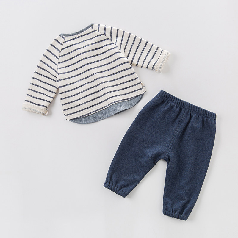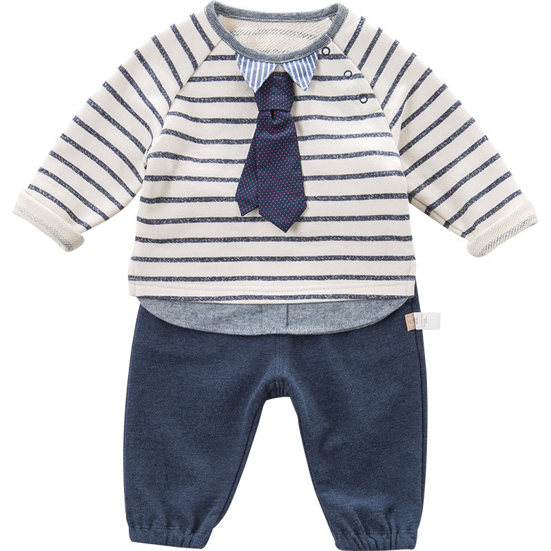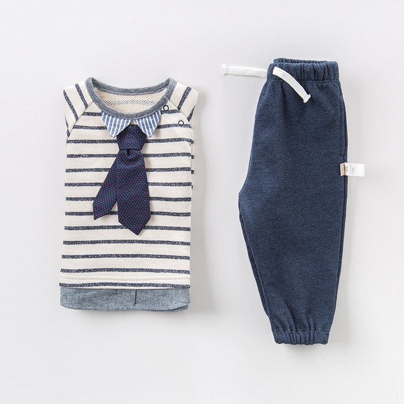 davebella David Bella baby children's clothing spring and autumn men's clothing college style striped tie two-piece set