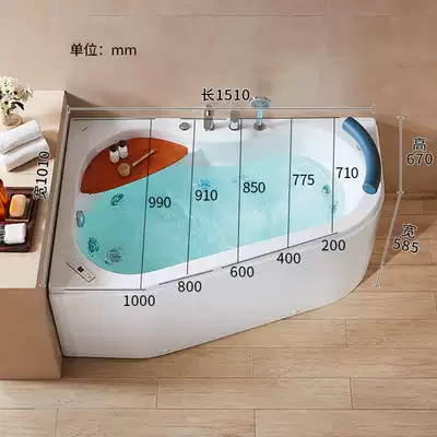 Anwar triangle bathtub fan-shaped bathtub household adult acrylic five-piece set surfing massage tub 1 5 meters