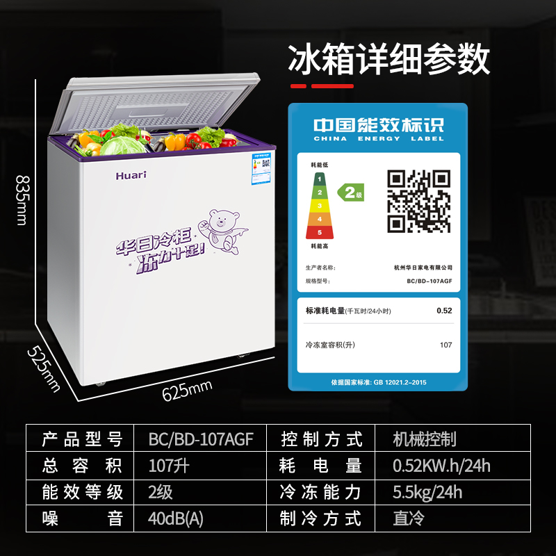 Huari China Daily Electric BC BD-107AGF Ice cabinet Domestic freezer horizontal small refrigerated freezer