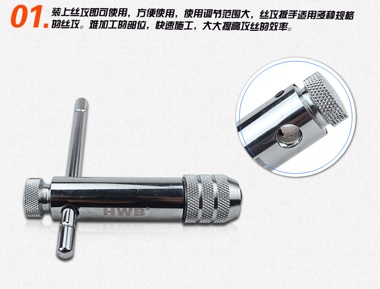 Germany HWB Hanweiburg T-type hand screw tapping wrench tapping device chuck lengthened adjustable ratchet screw tapping hand