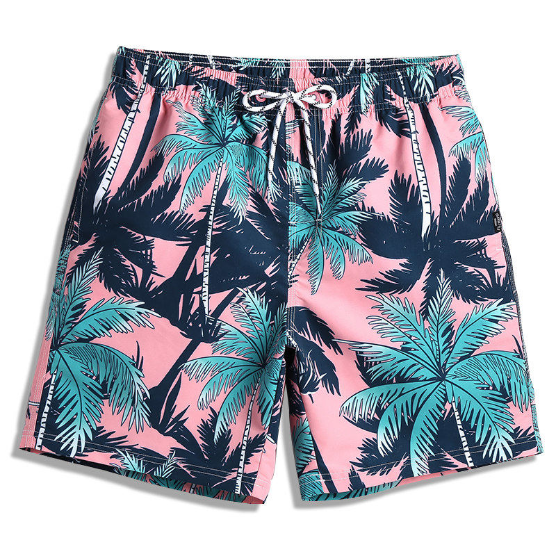 Holiday Beach Pants Men's Speed Dry Beach Pants Sport Large Size Pink Coconut Tree Casual Fashion Comfort Easy 50% Pants