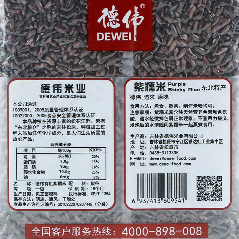 Dewei Organic Purple Glutinous Rice New Rice Blood Glutinous Rice Black Glutinous Rice Long Grain Glutinous Rice Northeast Farm Grain 400g
