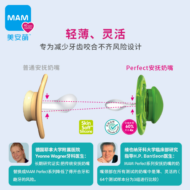 MAM Mei An Meng Perfect night sleeping pacifier pacifier 6 months to super soft baby anti-flatulence pacifier