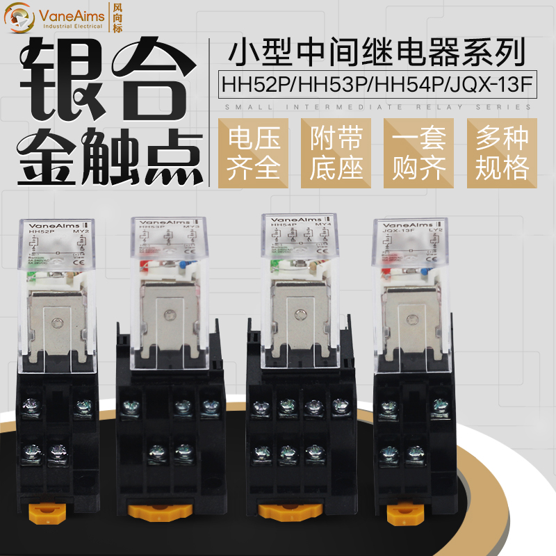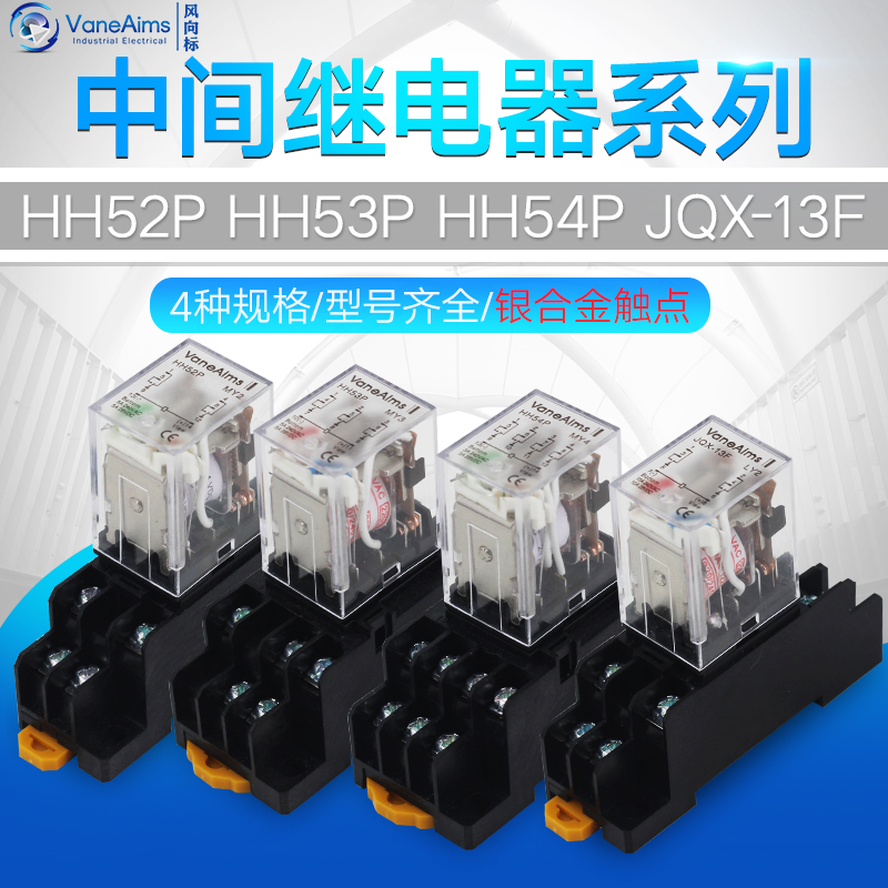 HH52P small intermediate electromagnetic relay DC24V12V with base AC220V HH53P54P JQX-13F