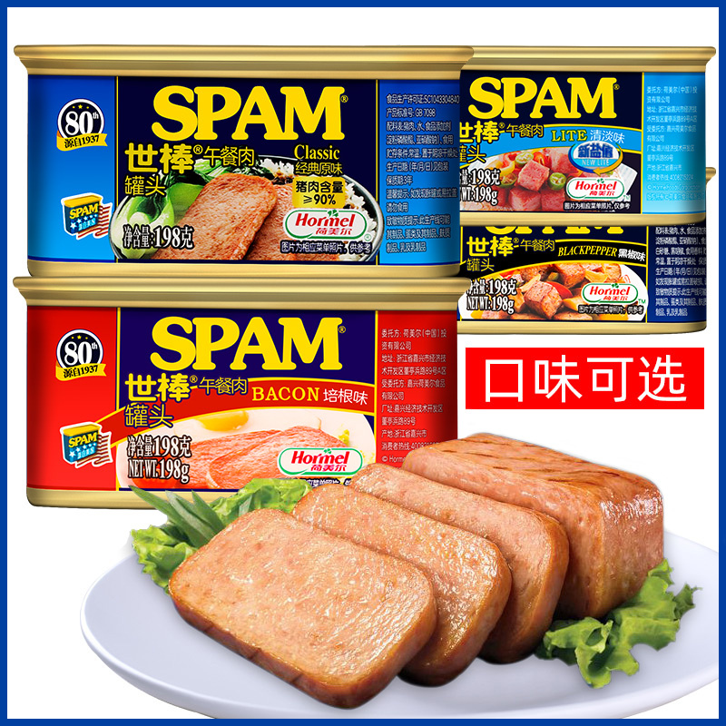 (2 cans) SPAM WORLD CLUB LUNCH MEAT CANNED LOTUS Classic Original Taste 198g * 2 jars of hot pot ready-to-eat