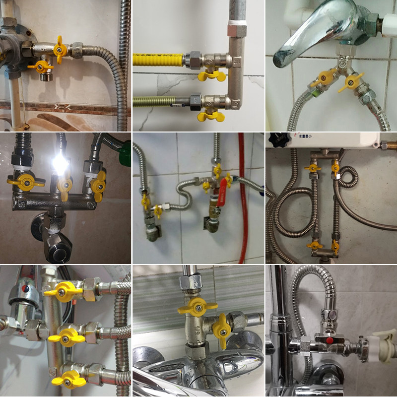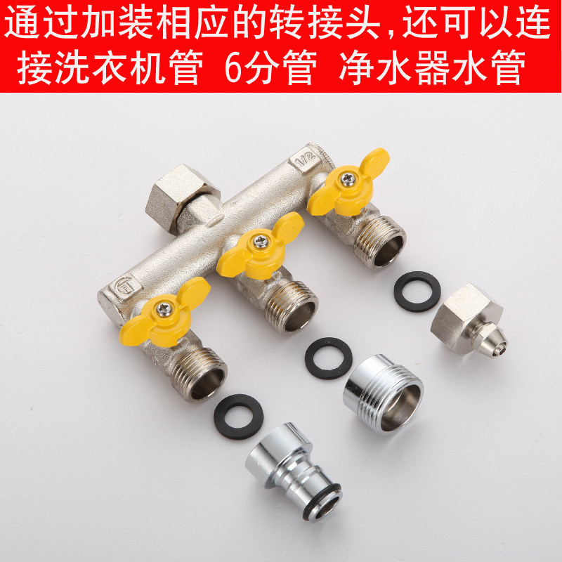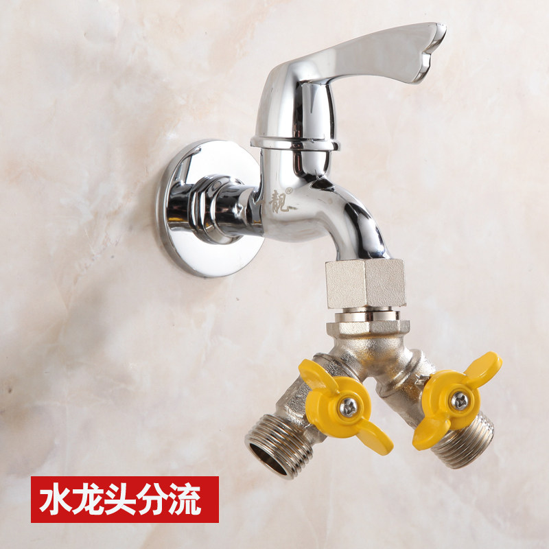 Copper ball valve three-way with movable joint one in and two out of washing machine faucet switch water pipe diverter