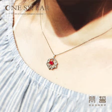 ONE SWEAR Vow Rosevine Real Diamond Cluster Set 18k Gold Pendant Colored Gemstone Love Red Sapphire Necklace