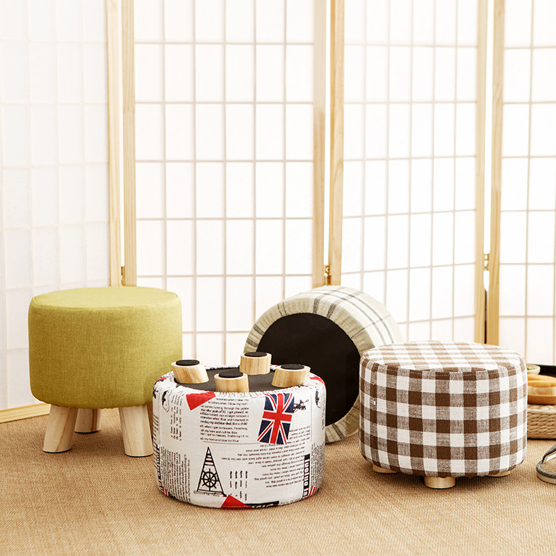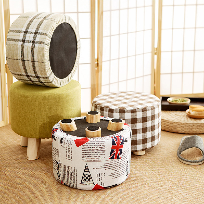 Solid wood bench round bench household fashion creative lazy people change shoes small bench bench small stool seat cushion can be removed
