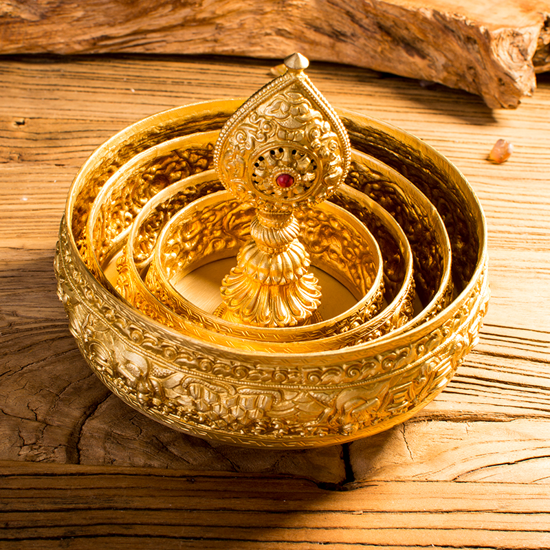 Pure copper Nepal craft for Manza plate Manda Mandala with tray oversized