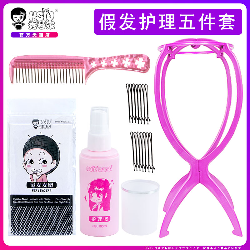 (Pianist) Wig Care Five Pieces Suit Special Wig Steel Comb Bracket Hair Net Care Liquid Cos Fake Hair