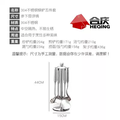 Heqing 304 stainless steel spatula set kitchen household cooking shovel spoon three-piece set cooking kitchenware set
