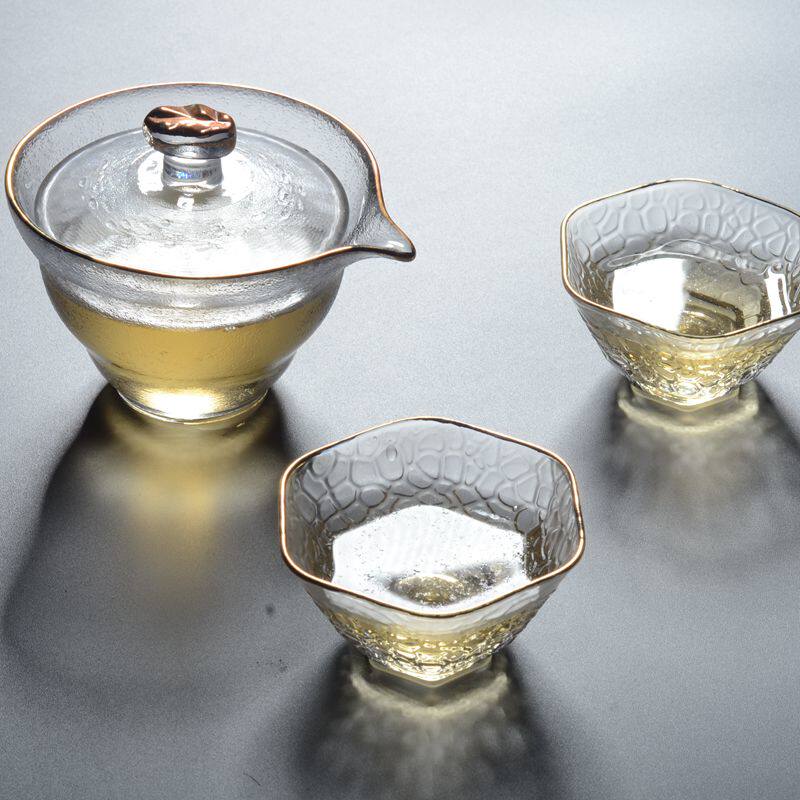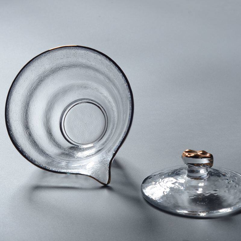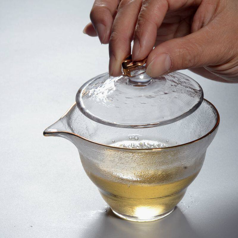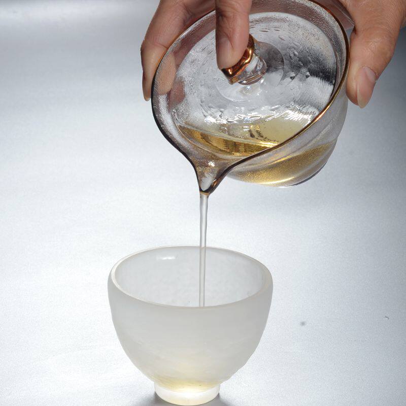 Handmade Day-style high temperature resistant glass one leaf floating cloud hand grit lid bowl frosted atomization thickened tea bowl