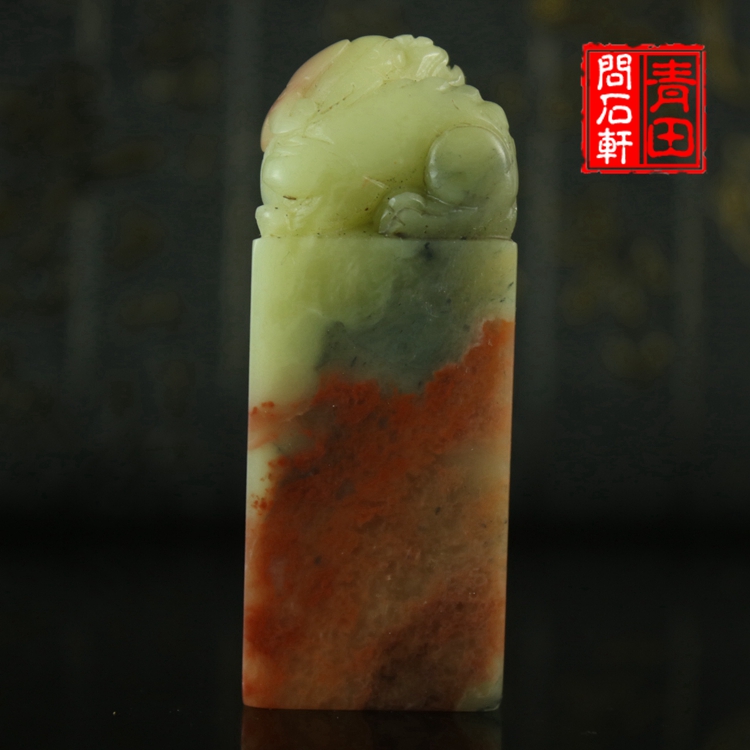 Green Fields Stone Seal Door Green Seal Door Red Flowers Three Colorful Stone Rare Breed Ancient Beast Button Chapters