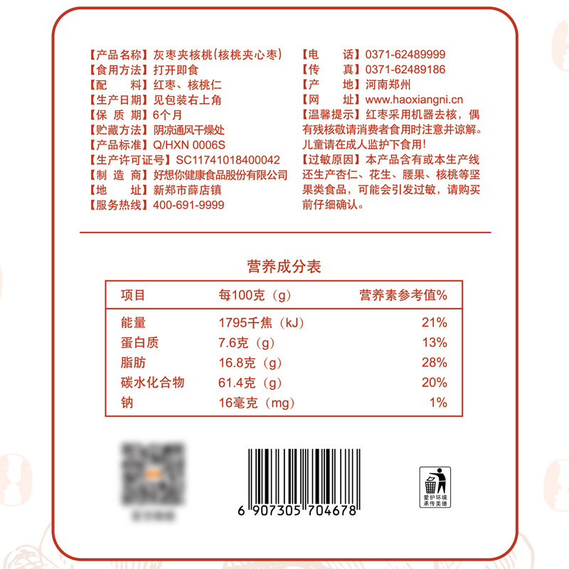 Good thinking you grey date clip walnut 218g bag Xinjiang red date Aksu date sandwich walnut kernel special production official website