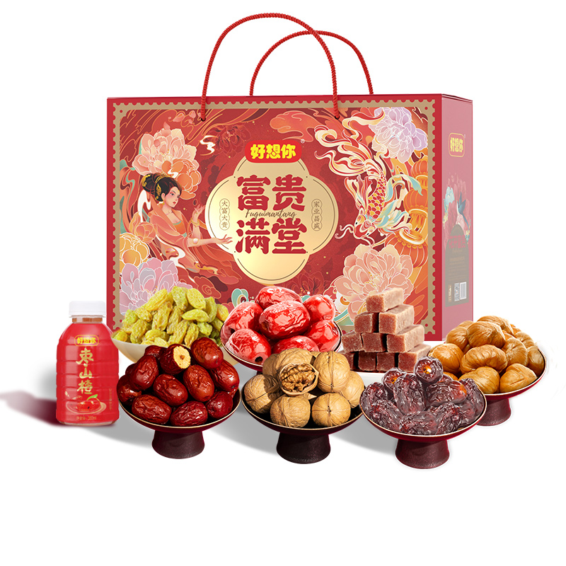 Good to think of your red jujube nut gift box flower blossom rich New Year goods gift big jujube sandwich walnut snack jujube national tide gift
