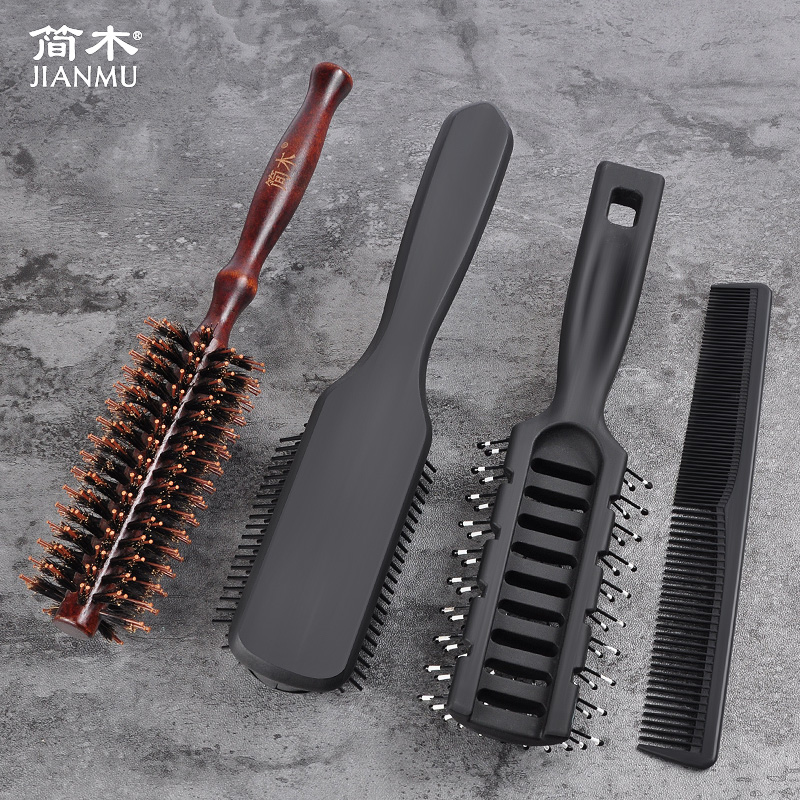 Hair salon hair salon Men's hair blowing tool set comb Big back oil head styling ribs comb Curly hair comb Round rolling comb