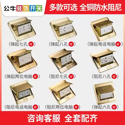Bull ground socket All copper waterproof damping five-hole network ground floor Invisible hidden household ground socket