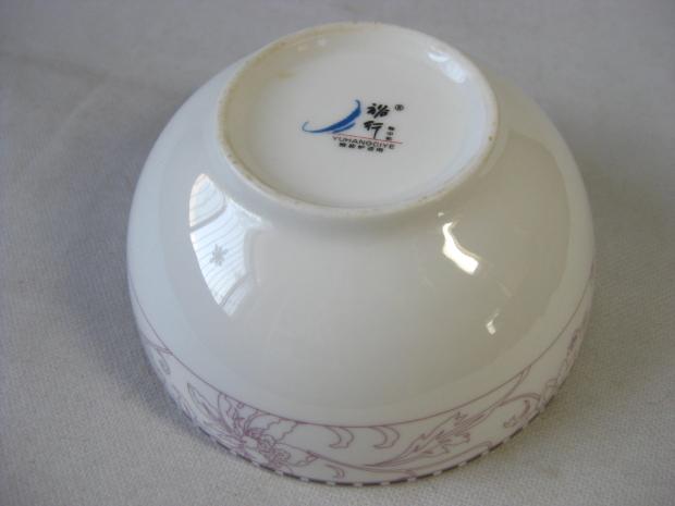 1980s Handan Yuhang porcelain Factory kiln glaze medium color flowers light purple color translucent tea bowl factory goods bottom ancient porcelain