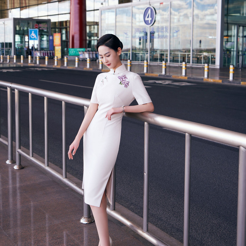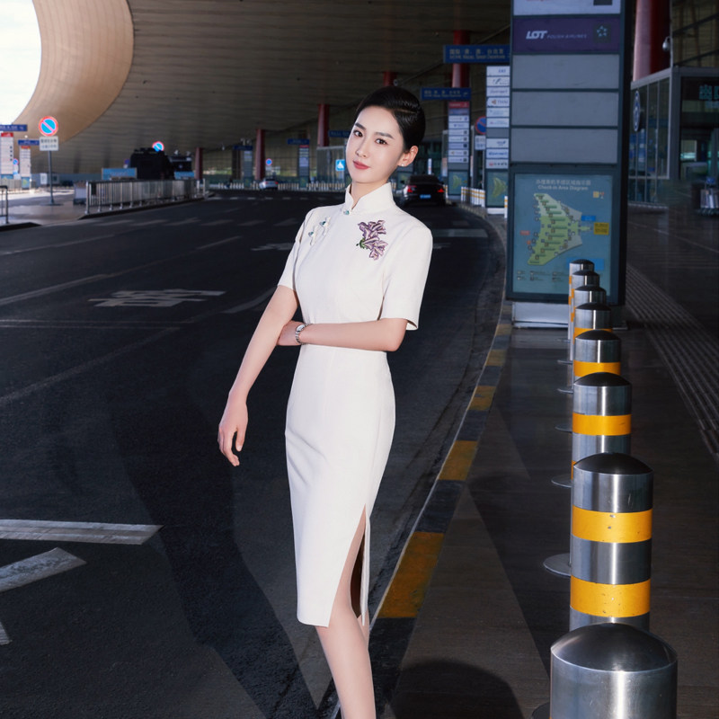 South China Airlines flight attendant uniformed flight attendant Republic of China Long version retro style Ancient Wind Embroidery High-end Improved New Chinese Qipao