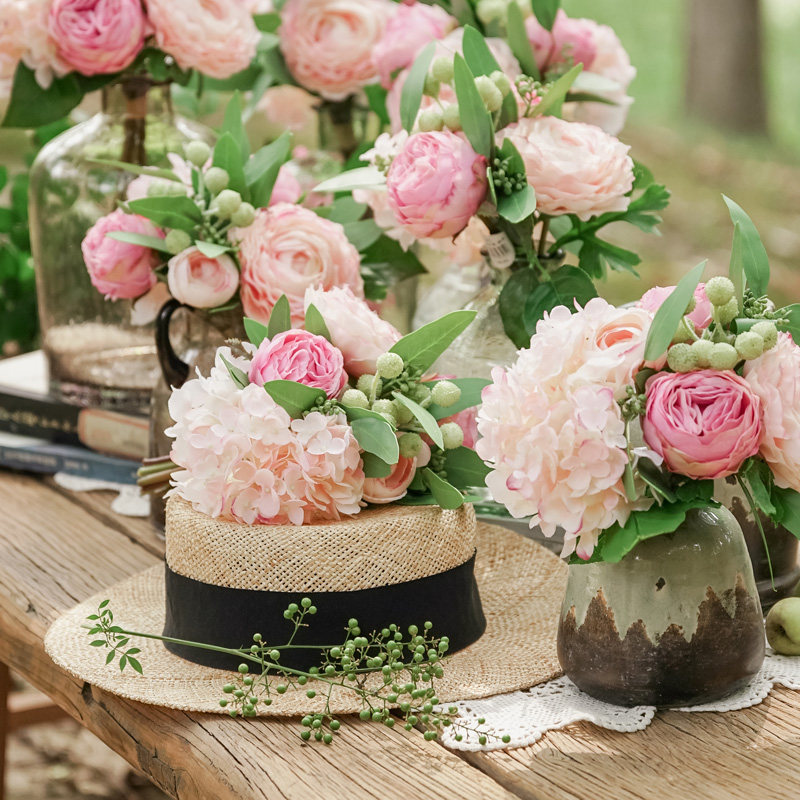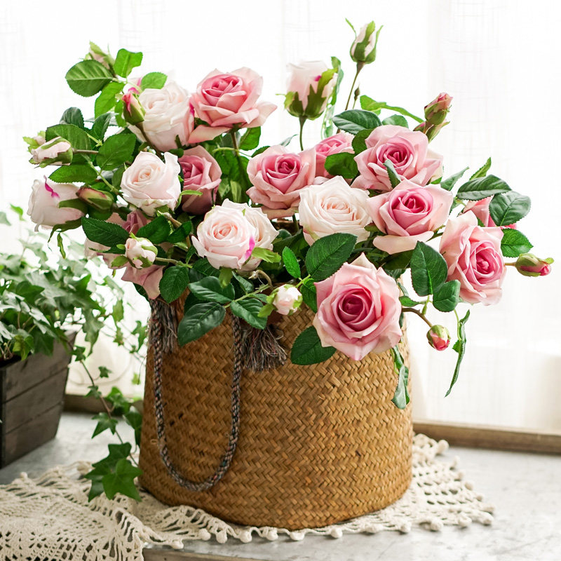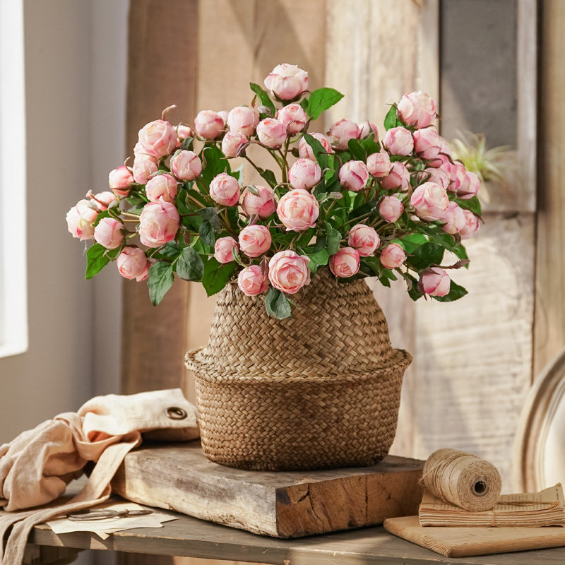 Left bank wheat field nine heads oil painting rose simulation flower living room decoration flower fake flower silk flower simulation flower floral decoration