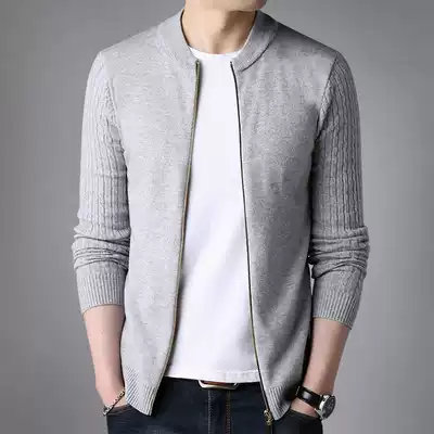 New Men's Zipper Cardigan Thin Knit Korean Slim Baseball Crewneck Cardigan Solid Color Casual Top Jacket