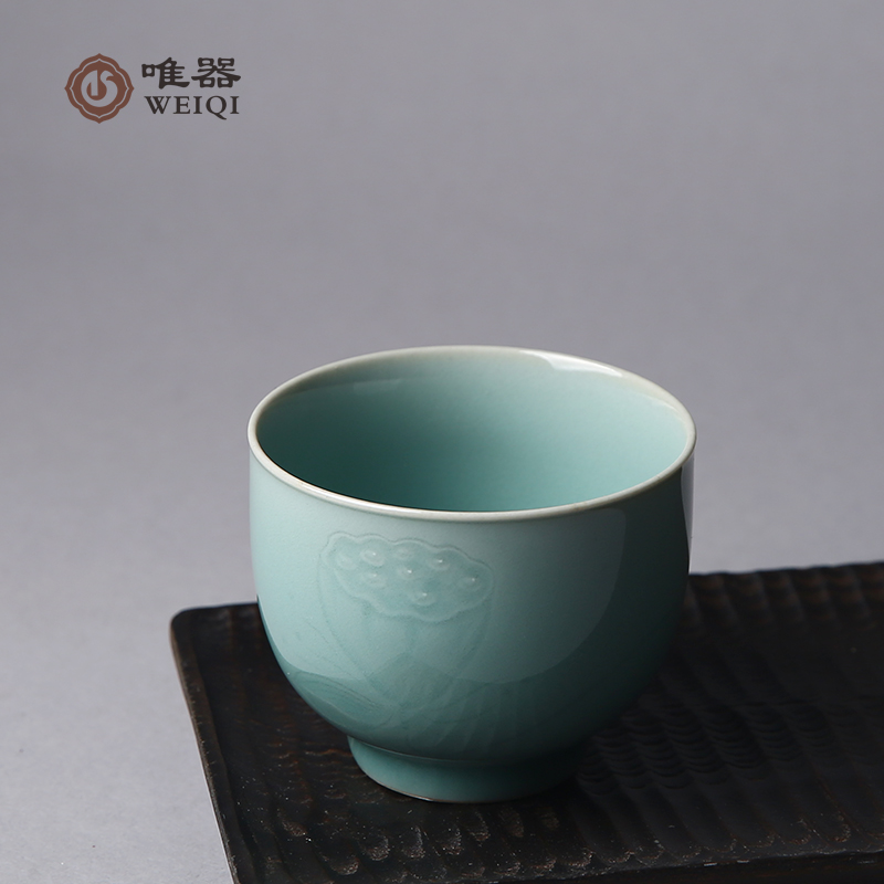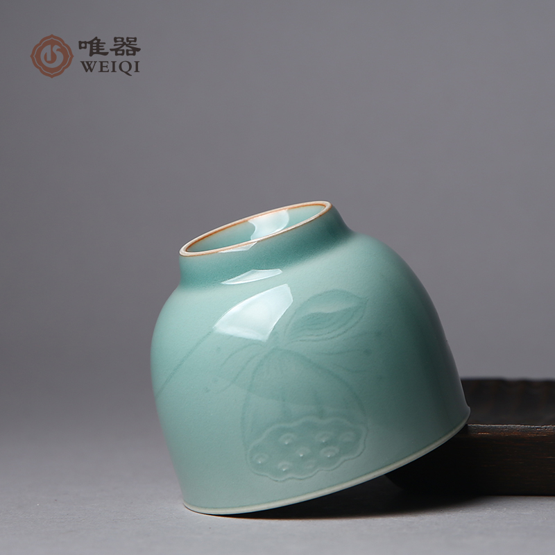 Green porcelain famous teacher Chen Ting all handmade lotus cup master's cup ceramic tea drinking cup koru tea with single cup