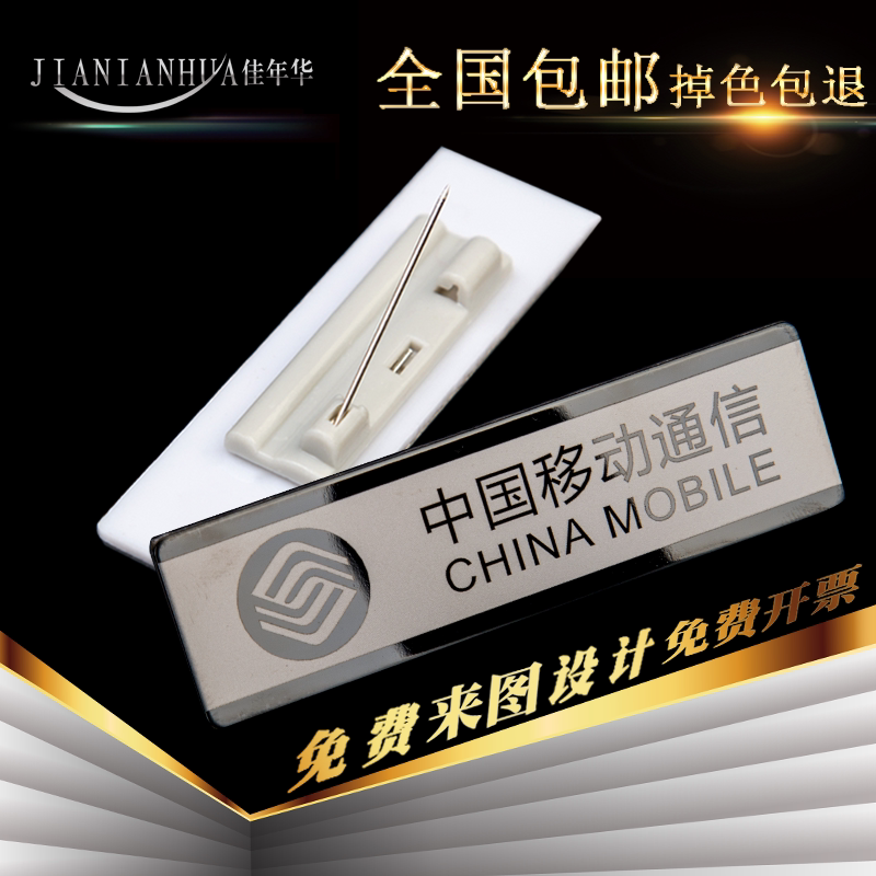 Stainless steel breastplate custom pin type high-grade work card custom magnet staff work plate metal work card production