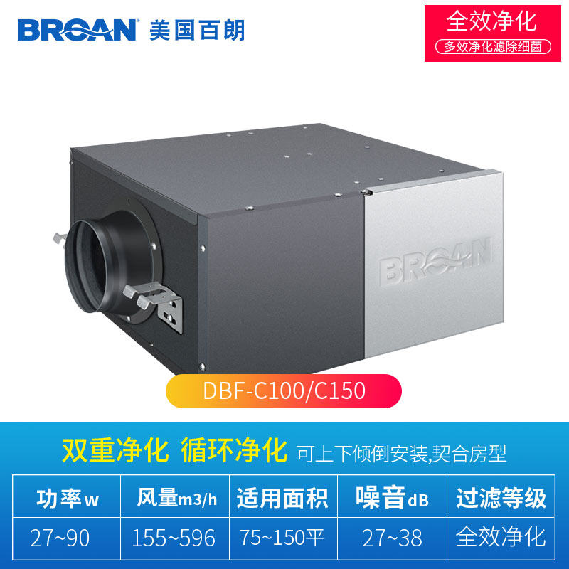 Bailang DFB-C150 composite filter box ventilator unidirectional flow fresh air smart energy silent household fresh air system