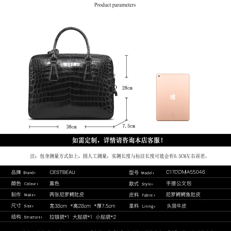 cestbeau Nile crocodile avocado leather men's handbag handbag travel business genuine leather bag with 2 belly-leather platinum area