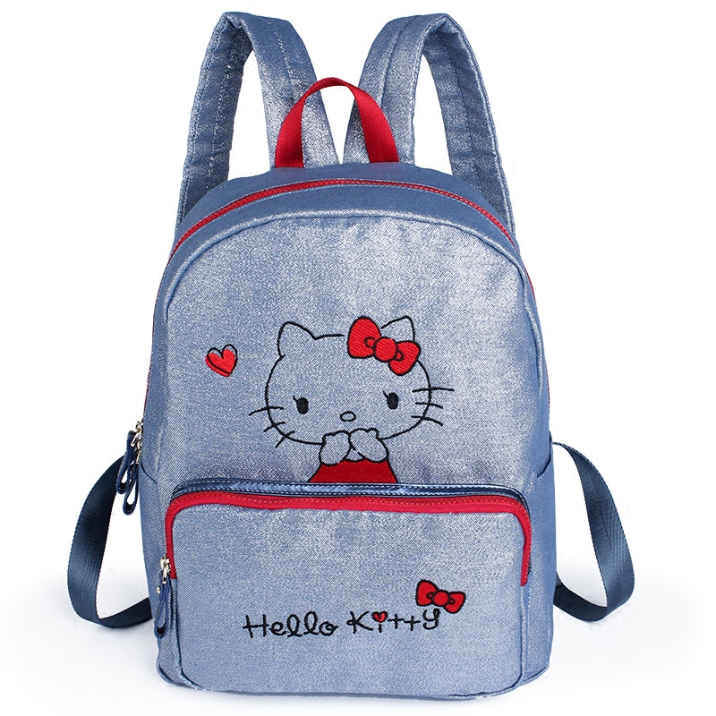 2020 spring and summer new denim metallic color large capacity embroidery Hello fashion casual shoulder student backpack