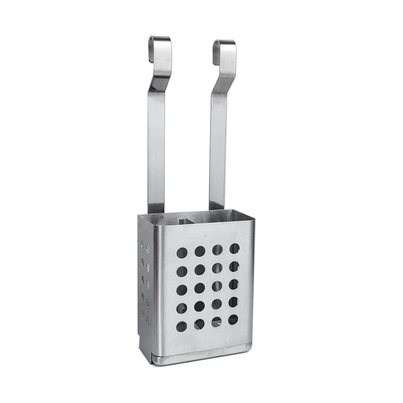 Short hook stainless steel chopsticks basket cage hanging holder free of punch square chopstick barrel cutlery fork holder cylinder kitchen shelve