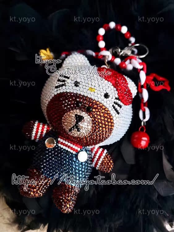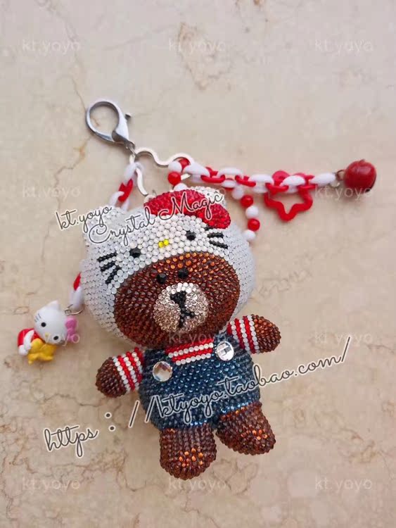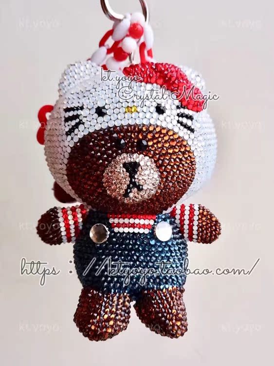 Austrian crystal adhesive drill LINE Brown bear changing clothes KITTY pendant car pendant bag hang