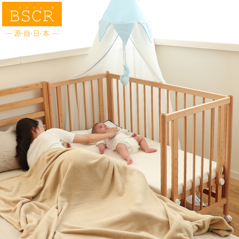 BSCR Japan crib Solid wood splicing bed Baby bed Newborn multifunctional solid wood movable bed